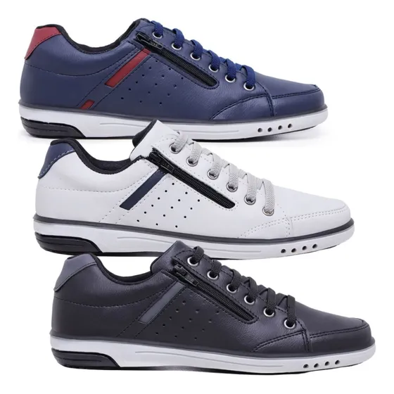 Kit 3 Pares Sapatênis Masculino Fechamento Elastico E Ziper