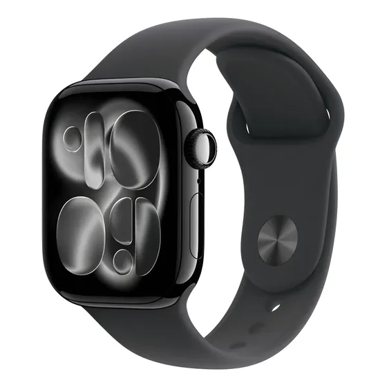 Apple Watch Series 10 GPS • Caixa preta brilhante de alumínio – 46 mm • Pulseira esportiva preta – M/G R$ 2.246 Ver no Mercado Livre